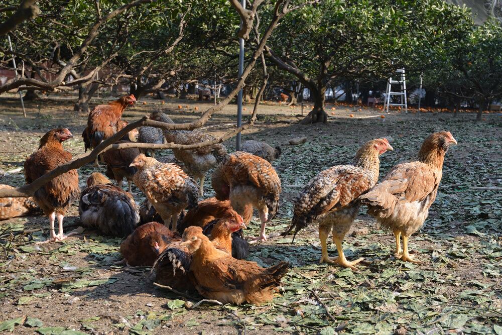 「山鶏」は宮崎県日向市、橘香園の細川豪邦さんが飼育しています。元々農場は先祖代々のみかん畑でした。毎年の悩みの種である雑草の対策として、地頭鶏の放飼を始めたのがきっかけです。大きな特徴として、抗生物質等の薬は一切与えていません。みかんの実を食べるなど、自然由来の栄養分を摂取しており病気になることもほとんどありません。あくまで自然のままに育てることをモットーとしており、その中で健康に育った地鶏は味も格別です。通常の若鶏(ブロイラー)が2ヶ月間鶏舎の中で飼育して出荷されますが、山鶏は飼育期間は概ね雄は4ヶ月、雌は5ヶ月平飼いされており、飼育密度は1m当たり2羽以下に保たれています。当然コストは上がりますが地鶏としてもともと持っている旨みに加え、長期間の放飼いにより肉質の弾力が増します。